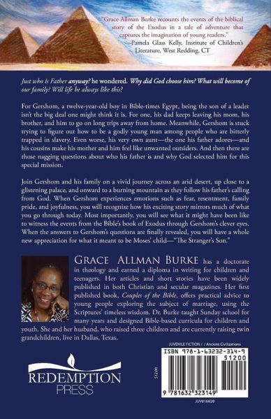 Just who is Father anyway? he wondered. Why did God choose him? What will become of our family? Will life be always like this? For Gershom, a twelve-year-old boy in Bible-times Egypt, being the son of a leader isn't the big deal one might think it is. For one, his dad keeps leaving his mom, his brother, and him to go on long trips away from home. Meanwhile, Gershom is stuck trying to figure out how to be a godly young man among people who are bitterly trapped in slavery. Even worse, his very own aunt-the one his father adores-and his cousins make his mother and him feel like unwanted outsiders. And then there are those nagging questions about who his father is and why God selected him for this special mission. Join Gershom and his family on a vivid journey across an arid desert, up close to a glistening palace, and onward to a burning mountain as they follow his father's calling from God. When Gershom experiences emotions such as fear, resentment, family pride, and joyfulness, you will recognize how his exciting story mirrors much of what you go through today. Most importantly, you will see what it might have been like to witness the events from the Bible's book of Exodus through Gershom's clever eyes. When the answers to Gershom's questions are finally revealed, you will have a whole new appreciation for what it meant to be Moses' child - "The Stranger's Son."