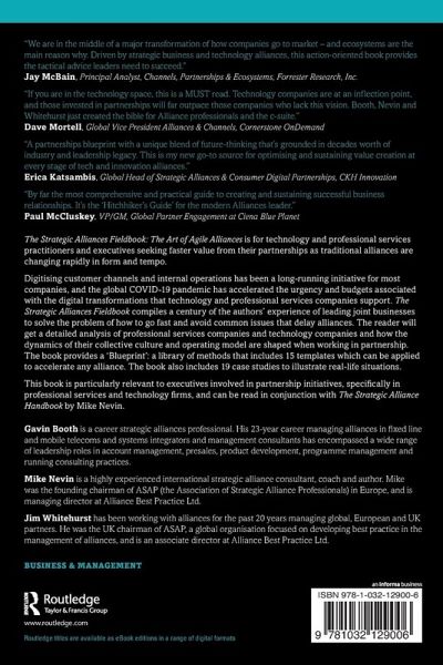 "The high-calibre authors Gavin Booth, Mike Nevin, and James Whitehurst have created an invaluable asset for the experienced as well as the novice partner channel professional who are tasked with building out new or strengthening and expanding existing alliances relationships in this new era of partner ecosystems. Partner channels have changed so much since their early days 30 years ago and will remain dynamic in the future, transforming their position and value to align with the ever-adjusting market demands. The Strategic Alliances Fieldbook: The Art of Agile Alliances is a very well-written playbook with brilliantly curated content to provide best practices."