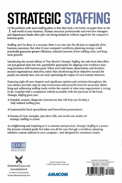 This book shows how to identify staffing needs and opportunities through qualitative and quantitative measures, and presents several effective, nontraditional approaches to strategic staffing. Many organizations understand the benefits of a longer-term approach to staffing: reduced turnover and hiring costs, improved efficiency and morale, and ultimately greater profits. Unfortunately, traditional approaches to strategic staffing are often more effective on paper than in the workplace. HR expert Thomas Bechet includes factors as diverse as promotions, retirements, "decruiting" (the active management of staff out of an organization), termination, and even retention. Featuring full case studies and dozens of examples, Strategic Staffing: Second Edition is both enlightening and practical. To help you create your own staffing plans, the companion site has several invaluable tools, including: PowerPoint(TM) slide presentations Customizable Excel(TM) spreadsheets Assessment and evaluation forms Calculations and analyses Sample staffing plans Integrating a strategic approach to staffing can result in reduced turnover and hiring costs, improved efficiency and morale, and ultimately greater profits. Strategic Staffing: Second Edition is a detailed, process-oriented guide that offers all the tools staffing professionals need.