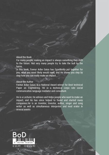 For many people, making an impact is always something they shift to the future. Not very many people try to take the bull by the horns.In this book, Faveur Aribe Gaius has Excellently put together for you, what you most likely would need, and He shows you step by step how you can really make an impact.