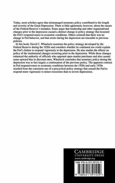 Today, most scholars agree that mismanaged monetary policy contributed to the length and severity of the Great Depression in the USA. There is little agreement, however, about the causes of the Federal Reserve's mistakes. This book examines the policy strategy developed by the Federal Reserve during the 1920s and considers whether its continued use could explain the Federal Reserve's failure to respond vigorously to the depression. It also studies the effects on policy of the institutional changes occurring prior to the depression. While these changes enhanced the authority of officials who opposed open-market purchases and also caused some upward bias in discount rates, Wheelock concludes that monetary policy during the depression was in fact largely a continuation of the previous policy. The apparent contrast in the institution's responsiveness to economic conditions between the 1920s and early 1930s resulted from the consistent use of a procyclical policy strategy that caused it to respond more vigorously to minor recessions than to severe depressions.