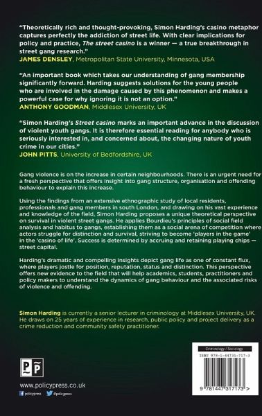 Simon Harding proposes an unique theoretical perspective on survival in violent street gangs which offers new evidence on gang behaviour, dynamics, affiliation and risks in inner city areas.