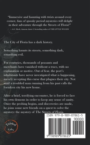 The City of Floria has a tragic history. Something haunts its streets, something dark, something evil. For centuries, thousands of peasants and merchants have vanished without a trace, with no explanation or motive. Out of fear, the port's inhabitants have never investigated what is happening, merely accepting this curse that plagues their city. Not until a troubled man running from his past calls the forsaken city his new home. After a brief, terrifying encounter, he is forced to face his own demons in order to keep any sense of sanity. Once the probing begins, and discoveries are made, he joins some new friends on a quest to solve the mystery: the mystery of The Streets of Floria.