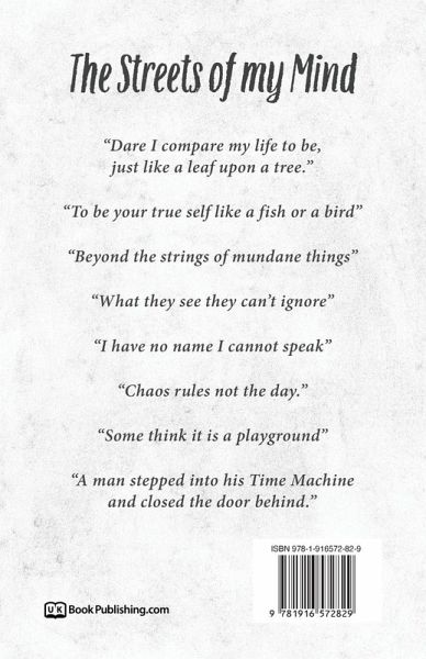 "Dare I compare my life to be just like a leaf upon a tree" "To be your true self like a fish or a bird" "Beyond the strings of mundane things" "What they see they can't ignore" "I have no name I cannot speak" "Chaos rules not the day" "A man stepped into his Time Machine and closed the door behind" "My body feels light as I walk through the night pass the noise from the bars of ill kind"