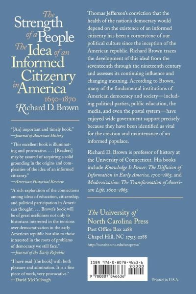Thomas Jefferson's conviction that the health of the nation's democracy would depend on the existence of an informed citizenry has been a cornerstone of our political culture since the inception of the American republic. Even today's debates over education reform and the need to be competitive in a technologically advanced, global economy are rooted in the idea that the education of rising generations is crucial to the nation's future. In this book, Richard Brown traces the development of the ideal of an informed citizenry in the seventeenth through nineteenth centuries and assesses its continuing influence and changing meaning. Although the concept had some antecedents in Europe, the full articulation of the ideal relationship between citizenship and knowledge came during the era of the American Revolution. The founding fathers believed that the First Amendment's guarantee of freedom of the press, religion, speech, and assembly would foster an informed citizenry. According to Brown, many of the fundamental institutions of American democracy and society, including political parties, public education, the media, and even the postal system, have enjoyed wide government support precisely because they have been identified as vital for the creation and maintenance of an informed populace.