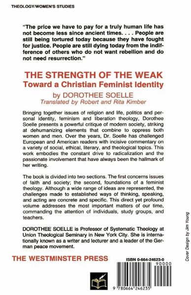 Bringing together issues of religion and life, politics and personal identity, feminism and liberation theology, Dorothee Soelle presents a powerful critique of modern society, striking at dehumanizing elements that combine to oppress both women and men. Over the years, Dr. Soelle has challenged European and American readers with incisive commentary on a variety of social, ethical, literary, and theological topics. This work embodies the constant drive to radicalization and the passionate involvement that have always been the hallmark of her writing. The book is divided into two sections. The first concerns issues of faith and society; the second, foundations of a feminist theology. Although a wide range of ideas are represented, the challenges made to established ways of thinking, speaking, and acting are concrete and specific. This direct yet profound volume addresses the most important matters of our time, commanding the attention of individuals, study groups, and teachers.