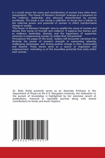 In a world where the voices and contributions of women have often been marginalized, "The Power of Women's Strength" emerges as a testament to the resilience, leadership, and advocacy demonstrated by women worldwide. This book is not merely a collection of stories but a tribute to the collective power and potential of women to effect transformative change in society."The Power of Women's Strength" aims to amplify the voices of women and elevate their stories of triumph and resilience. It explores key themes such as resilience, leadership, diversity, and the importance of supportive networks in empowering women to realize their full potential.Throughout the pages of this book, readers will encounter narratives that illustrate the power of women's strength in overcoming adversity, challenging stereotypes, and driving positive change in their communities and beyond. These stories serve as a source of inspiration and empowerment, reminding us of the boundless potential that exists within each woman.
