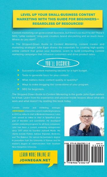 Level up your small-business content marketing with this guide for beginners-regardless of resources! Content marketing can grow a small business, but there is so much to do it can be overwhelming. There's SEO, "pillar content," blog post creation, brand storytelling and so much more. Where do you start? In The Stripped-Down Guide to Content Marketing, content creator and marketing strategist John Egan shares the essentials for creating high-quality online content that grows your business. Your content will attract, educate, enlighten, and retain current and potential members of your audience after you've uncovered his strategies. Through examples of compelling content marketing campaigns you'll learn to harness the power to influence customers and drive product sales. You'll also discover:Successful content marketing secrets for a tight budget Tools to generate buzz for your content, including LinkedIn, Instagram, Twitter, and other social media. Is content quantity more important than content quality? Ways to make blogging the cornerstone of your program. The path to SEO for beginners, including the #1 rule you must know. This hands-on guide to content marketing strategy is the book John Egan wishes he'd had when he entered the field. Learn from his experience inThe Stripped-Down Guide to Content Marketing, and uncover valuable inside lessons and tips about what will work, what won't, and more from the online world of content marketing.