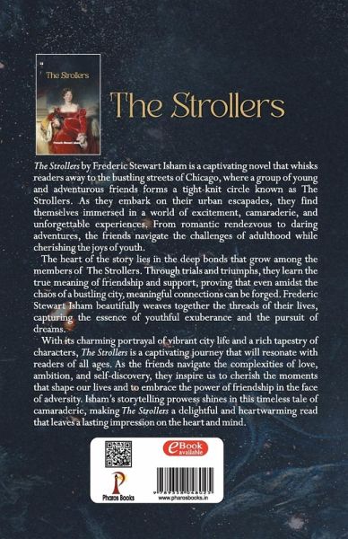 "The Strollers" by Frederic Stewart Isham is a captivating novel that whisks readers away to the bustling streets of Chicago, where a group of young and adventurous friends forms a tight-knit circle known as "The Strollers." As they embark on their urban escapades, they find themselves immersed in a world of excitement, camaraderie, and unforgettable experiences. From romantic rendezvous to daring adventures, the friends navigate the challenges of adulthood while cherishing the joys of youth. The heart of the story lies in the deep bonds that grow among the members of "The Strollers." Through trials and triumphs, they learn the true meaning of friendship and support, proving that even amidst the chaos of a bustling city, meaningful connections can be forged. Frederic Stewart Isham beautifully weaves together the threads of their lives, capturing the essence of youthful exuberance and the pursuit of dreams. With its charming portrayal of vibrant city life and a rich tapestry of characters, "The Strollers" is a captivating journey that will resonate with readers of all ages. As the friends navigate the complexities of love, ambition, and self-discovery, they inspire us to cherish the moments that shape our lives and to embrace the power of friendship in the face of adversity. Isham's storytelling prowess shines in this timeless tale of camaraderie, making "The Strollers" a delightful and heartwarming read that leaves a lasting impression on the heart and mind.