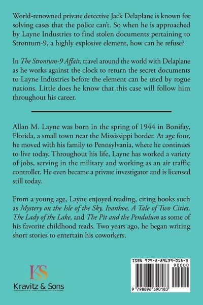 World-renowned private detective Jack Delaplane is known for solving cases that the police can't. So when he is approached by Layne Industries to find stolen documents pertaining to Strontum-9, a highly explosive element, how can he refuse? In The Strontum-9 Affair, travel around the world with Delaplane as he works against the clock to return the secret documents to Layne Industries before the element can be used by rogue nations. Little does he know that this case will follow him throughout his career.