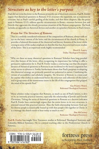 Paul did not write his letter to the Romans primarily out of doctrinal concerns. Paul B. Fowler argues that rhetorical questions in Romans 3?11 structure the argument, not as responses to criticism, but as Pauls careful guiding of the reader, and that these chapters, like the paraenesis in Romans 12?15, address specific circumstances in Rome tensions between Jew and Gentile that aggravate the already precarious situation of the Roman congregation. The book includes an appendix on rhetorical devices and another on epistolary formulas in Pauls letters.