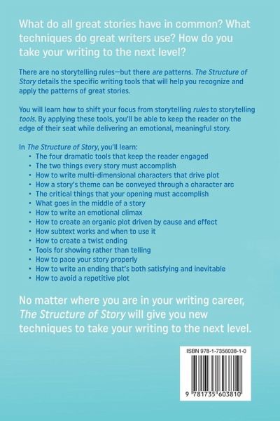 What do all great stories have in common? What techniques do great writers use? How do you take your writing to the next level? There are no storytelling rules-but there are patterns. The Structure of Story details the specific writing tools that will help you recognize and apply the patterns of great stories. You will learn how to shift your focus from storytelling rules to storytelling tools. By applying these tools, you'll be able to keep the reader on the edge of their seat while delivering an emotional, meaningful story. In The Structure of Story, you'll learn the four dramatic tools that keep the reader engaged, the two things every story must accomplish, how to write multi-dimensional characters that drive plot, how a story's theme can be conveyed through a character arc, how to create an organic plot driven by cause and effect, the critical things that your opening must accomplish, what goes in the middle of a story, how to write an emotional climax, how subtext works and when to use it, how to create a twist ending, tools for showing rather than telling, how to pace your story properly, how to write an ending that's both satisfying and inevitable, and how to avoid a repetitive plot. No matter where you are in your writing career, The Structure of Story will give you new techniques to take your writing to the next level.