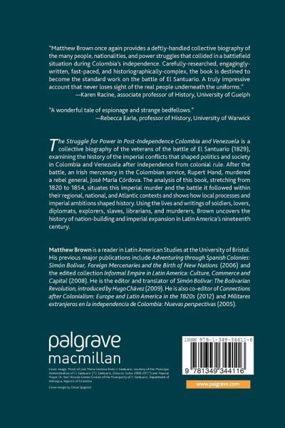 "Matthew Brown once again provides a deftly-handled collective biography of the many people, nationalities and power struggles that collided in a battlefield situation during Colombia's independence. Carefully-researched, engagingly-written, fast-paced and historiographically-complex, the book is destined to become the standard work on the Battle of El Santuario. A truly impressive account that manages never to lose sight of the real people underneath the uniforms." - Karen Racine, associate professor of History, University of Guelph