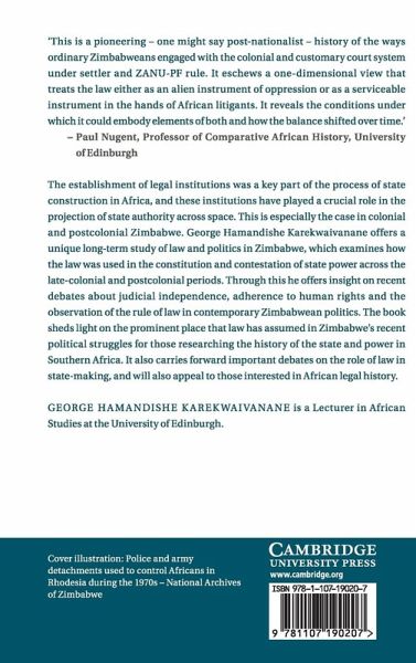 The establishment of legal institutions was a key part of the process of state construction in Africa, and these institutions have played a crucial role in the projection of state authority across space. This is especially the case in colonial and postcolonial Zimbabwe. George Karekwaivanane offers a unique long-term study of law and politics in Zimbabwe, which examines how the law was used in the constitution and contestation of state power across the late-colonial and postcolonial periods. Through this, he offers insight on recent debates about judicial independence, adherence to human rights, and the observation of the rule of law in contemporary Zimbabwean politics. The book sheds light on the prominent place that law has assumed in Zimbabwe's recent political struggles for those researching the history of the state and power in Southern Africa. It also carries forward important debates on the role of law in state-making, and will also appeal to those interested in African legal history.