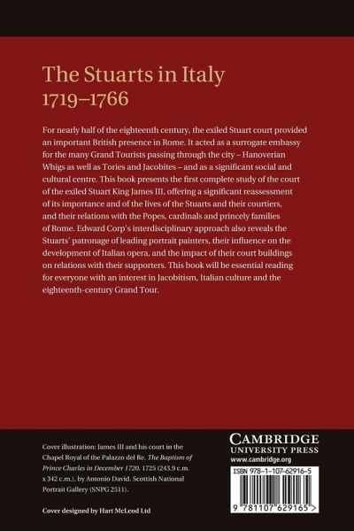 For nearly half of the eighteenth century, the exiled Stuart Court provided an important British presence in Rome. It acted as a surrogate embassy for the many Grand Tourists passing through the city - Hanoverian Whigs as well as Tories and Jacobites - and as a significant social and cultural centre. This book presents the first complete study of the Court of the exiled Stuart King James III, offering a significant reassessment of its importance and of the lives of the Stuarts and their courtiers, and their relations with the Popes, cardinals and princely families of Rome. Edward Corp's interdisciplinary approach also reveals the Stuarts' patronage of leading portrait painters, their influence on the development of Italian opera, and the impact of their Court buildings on relations with their supporters. This book will be essential reading for everyone with an interest in Jacobitism, Italian culture and the eighteenth-century Grand Tour.