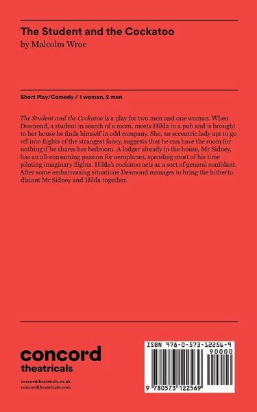 The Student and the Cockatoo is a play for two men and one woman. When Desmond, a student in search of a room, meets Hilda in a pub and is brought to her house he finds himself in odd company. She, an eccentric lady apt to go off into flights of the strangest fancy, suggests that he can have the room for nothing if he shares her bedroom. A lodger already in the house, Mr Sidney, has an all-consuming passion for aeroplanes, spending most of his time piloting imaginary flights. Hilda's cockatoo acts as a sort of general confidant. After some embarrassing situations Desmond manages to bring the hitherto distant Mr Sidney and Hilda together.