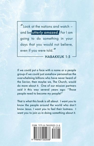 This is the companion study guide for John Andrews' Utterly Amazed. Our prayer before we even released Utterly Amazed was to: - Point people to Jesus that don't know Him - Brag on Jesus by telling His stories - Encourage and empower Believers to step out of their own boat - Trust Jesus to do something "crazy" in and through them The Study Guide will help you dive deeper into what God is calling you, and what stepping out of YOUR boat looks like. We want you to find AND follow your role in the Great Commission. "Look at the nations and watch - and be utterly amazed. For I am going to do something in your days that you would not believe even if you were told." - Habakkuk 1:5