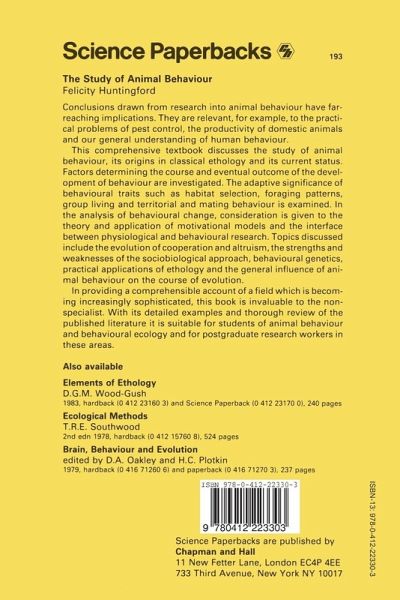 1 Introduction.- 1.1 The ethological approach to the study of behaviour.- 1.2 A brief outline of classical ethological theory.- 1.3 The modern study of animal behaviour.- 1.4 An outline of the book.- 2 The description and measurement of behaviour.- 2.1 Describing behaviour by its function.- 2.2 Describing behaviour by its form.- 2.3 Describing and measuring the relationship between an animal and its environment.- 2.4 What is the point of all this sophisticated analysis?.- 3 The study of the causes of behavioural change.- 3.1 What constitutes a causal explanation of behaviour?.- 3.2 The different kinds of causal explanation.- 3.3 Motivational models.- 3.4 Studying external influences on behaviour.- 3.5 Studying internal influences on behaviour.- 3.6 What is the nature of the mechanisms which cause behavioural change?.- 3.7 Studying the physiological bases of behavioural change.- 4 The development of behaviour.- 4.1 Problems with the instinct-learning dichotomy.- 4.2 Why is the term innate still used?.- 4.3 Describing the ontogeny of behaviour.- 4.4 Characterizing the factors which influence the development of behaviour.- 4.5 Classifying the factors which influence the development of behaviour.- 4.6 Some general features of behavioural development.- 5 The adaptive significance of behaviour.- 5.1 Sources of evidence about the adaptive significance of behaviour.- 5.2 Difficulties in studying the adaptive significance of behaviour.- 5.3 The state of the art.- 5.4 The adaptive significance of the way animals pattern their behavior in time.- 5.5 The adaptive significance of the way animals use space.- 5.6 The adaptive significance of an animal's aggressive responses.- 5.7 The adaptive significance of an animal's breeding habits; mating systems.- 5.8 Adaptive significance of behaviour accompanying mating.- 5.9 The adaptive significance of parental care.- 5.10 The adaptive significance of living in groups.- 5.11 Behaviour which cannot be explained by classic natural selection theory.- 5.12 Overview; sociobiology and behavioural ecology.- 6 The phylogeny of behaviour.- 6.1 Sources of evidence about the phylogeny of behaviour.- 6.2 Some representative behavioural phylogenies.- 6.3 Deriving general principles of behavioural evolution.- 7 The role of behaviour in the evolutionary process.- 7.1 The behaviour of other animals as a major selective force.- 7.2 Behaviour dictates the selection pressures to which an animal is exposed.- 7.3 The impact of behaviour on population structure.- 8 Behavioural genetics.- 8.1 The objectives of research into the inheritance of behaviour.- 8.2 Potential contributions of genetics to the study of animal behaviour.- 8.3 Quantitative genetics.- 8.5 Screening known genetic variants for behavioural differences.- 8.6 Characterizing the precise behavioural effects of genetic differences.- 8.7 The mechanisms whereby genes influence behaviour.- 8.8 Genetic mosaics.- 8.9 Animal behaviour and behavioural genetics.- 9 Applied ethology.- 9.1 Clarification of terms; what is applied ethology?.- 9.2 Ways in which etiological research can be applied to practical problems.- 9.3 Pest control.- 9.4 Increasing the productivity of commercially important species.- 9.5 Animal welfare.- 9.6 Conservation.- 9.7 Human behaviour.- References.- Author index.- Species index.