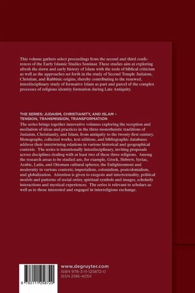 The study of Islam's origins from a rigorous historical and social science perspective is still wanting. At the same time, a renewed attention is being paid to the very plausible pre-canonical redactional and editorial stages of the Qur'an, a book whose core many contemporary scholars agree to be formed by various independent writings in which encrypted passages from the OT Pseudepigrapha, the NT Apocrypha, and other ancient writings of Jewish, Christian, and Manichaean provenance may be found. Likewise, the earliest Islamic community is presently regarded by many scholars as a somewhat undetermined monotheistic group that evolved from an original Jewish-Christian milieu into a distinct Muslim group perhaps much later than commonly assumed and in a rather unclear way. The following volume gathers select studies that were originally shared at the Early Islamic Studies Seminar. These studies aim at exploring afresh the dawn and early history of Islam with the tools of biblical criticism as well as the approaches set forth in the study of Second Temple Judaism, Christian, and Rabbinic origins, thereby contributing to the renewed, interdisciplinary study of formative Islam as part and parcel of the complex processes of religious identity formation during Late Antiquity.