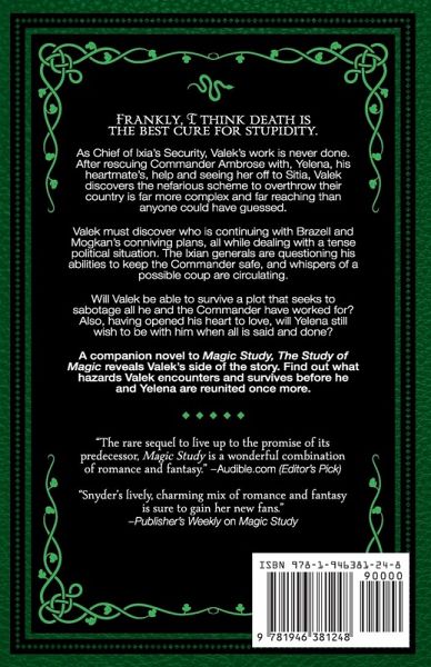 Frankly, I think death is the best cure for stupidity. As Chief of Ixia's Security, Valek's work is never done. After rescuing Commander Ambrose with, Yelena, his heartmate's, help and seeing her off to Sitia, Valek discovers the nefarious scheme to overthrow their country is far more complex and far reaching than anyone could have guessed. Valek must discover who is continuing with Brazell and Mogkan's conniving plans, all while dealing with a tense political situation. The Ixian generals are questioning his abilities to keep the Commander safe, and whispers of a possible coup are circulating. Will Valek be able to survive a plot that seeks to sabotage all he and the Commander have worked for? Also, having opened his heart to love, will Yelena still wish to be with him when all is said and done? A companion novel to Magic Study, The Study of Magic reveals Valek's side of the story. Find out what hazards Valek encounters and survives before he and Yelena are reunited once more.