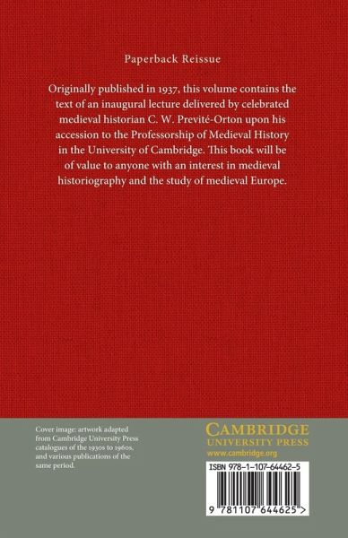 Originally published in 1937, this volume contains the text of an inaugural lecture delivered by celebrated medieval historian C. W. Previté-Orton upon his accession to the Professorship of Medieval History in the University of Cambridge. This book will be of value to anyone with an interest in medieval historiography and the study of medieval Europe.