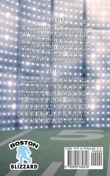 MAVERICK As the star defensive end for the Boston Blizzard, I pride myself on keeping my nose clean and my head in the game. I'm a no-nonsense kind of guy, but when I'm approached to fake date the world's biggest popstar to stir up publicity for her halftime performance at the biggest game of the year, I throw caution to the wind and agree to the crazy plan. But when I get to know the real Bella Simon, the one she doesn't show to the rest of the world, my feelings for her quickly start to become something very real. BELLA For the last ten years, I've toured the world, performing for millions of adoring fans. And while my life looks flashy and exciting from the outside, the reality is anything but. The friends I have are all for show, and at twenty-four years old, my busy schedule has prevented me from ever going on a proper date. So, when my publicist tells me the hottest pro football player to ever exist will be my fake boyfriend, I decide to enjoy the ride. I try to keep reminding myself that none of it is real, but my heart isn't getting the message. Because I can't seem to stop myself from falling for him...even though I know our whirlwind romance is just a stunt.