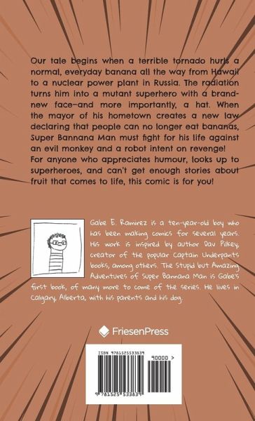 Our tale begins when a terrible tornado hurls a normal, everyday banana all the way from Hawaii to a nuclear power plant in Russia. The radiation turns him into a mutant superhero with a brand-new face-and more importantly, a hat. When the mayor of his hometown creates a new law declaring that people can no longer eat bananas, Super Bannana Man must fight for his life against an evil monkey and a robot intent on revenge! For anyone who appreciates humour, looks up to superheroes, and can't get enough stories about fruit that comes to life, this comic is for you!