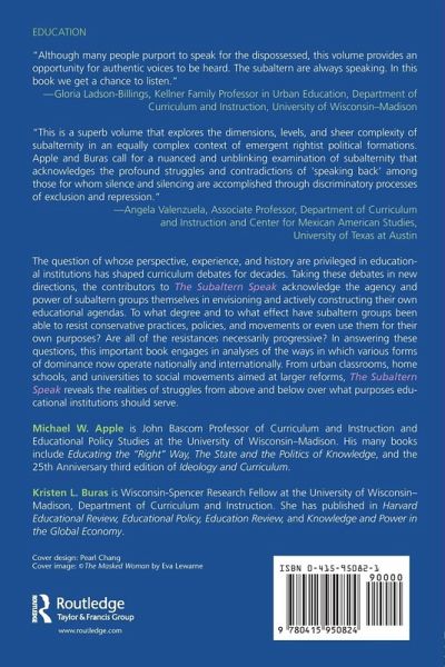 The question of whose perspective, experience and history is privileged in educational institutions has shaped curriculum debates for decades. In this insightful collection, Michael W. Apple and Kristen L. Buras interrogate the notion that some knowledge is worth more than others. The Subaltern Speak combines an analysis of the ways in which various forms of power now operate, with a specific focus on spaces in which subaltern groups act to reassert their own perceived identities, cultures and histories.