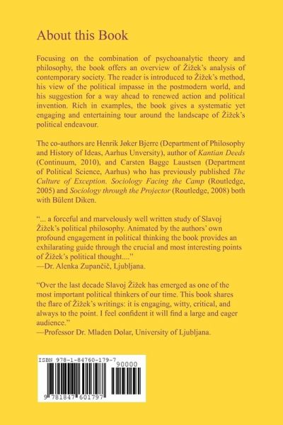 A study of Slavoj ¿i¿ek's political philosophy. Focusing on the combination of psychoanalytic theory and philosophy, the book offers an overview of ¿i¿ek's analysis of contemporary society. In five chapters, the reader is introduced to ¿i¿ek's method, his view of the political impasse in the postmodern world, and his suggestion for a way ahead to renewed action and political invention. Rich in examples, the book gives an engaging and entertaining tour around the landscape of ¿i¿ek's political endeavour, while at the same time insisting on a more systematic and piecemeal approach than the Slovenian tends to offer himself.