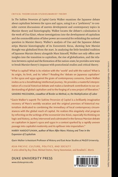 In The Sublime Perversion of Capital Gavin Walker examines the Japanese debate about capitalism between the 1920s and 1950s, using it as a "prehistory" to consider current problems of uneven economic development and contemporary topics in Marxist theory and historiography.