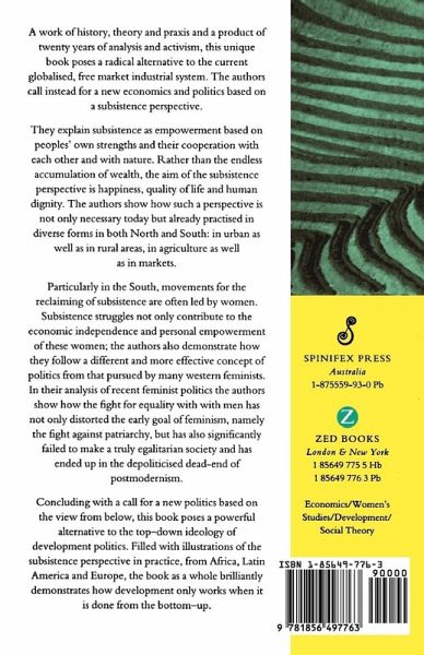 Two leading feminist thinkers, posing a radical alternative to the current free-market industrial system, show how if we are to survive, economies must become needs-based, environmentally sustainable, co-operative and local. They explain how the current capitalist system is none of these things, is inherently unstable and is dependent on the exploitation of various marginalized groups, particularly women, and of the environment. They call instead for a new politics and economics based on subsistence and, drawing on practical examples from Africa, Latin America and Europe, show how this principle can and does have a positive effect on market exchange. The book demonstrates how development only works when it is done from the bottom up and concludes with a call for a new politics based on this view from below.