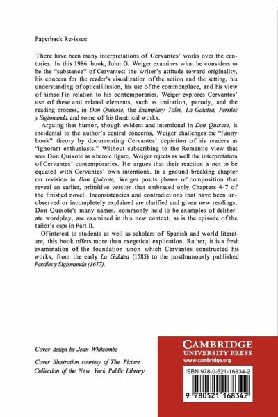 There have been many interpretations of Cervantes' works over the centuries. In this 1986 book, John G. Weiger examines what he considers to be the 'substance' of Cervantes: the writer's attitude toward originality, his concern for the reader's visualization of the action and the setting, his understanding of optical illusion, his use of the commonplace, and his view of himself in relation to his contemporaries. Weiger explores Cervantes' use of these and related elements, such as imitation, parody, and the reading process, in Don Quixote, the Exemplary Tales, La Galatea, Persiles y Sigismunda, and some of his theatrical works. Of interest to students as well as scholars of Spanish and world literature, this book offers more than exegetical explication. Rather, it is an examination of the foundation upon which Cervantes constructed his works, from the early La Galatea (1585) to the posthumously published Persiles y Sigismunda (1617).