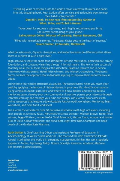 High achievers share the same four attributes: intrinsic motivation, perseverance, strong foundation, constantly learning through informal means. The key to their success is that they do all four of these things at the same time. Based on research and in-person interviews with astronauts, Nobel Prize winners, and Olympic champions, The Success Factor outlines the approach that individuals aspiring to improve their performance can adopt.
