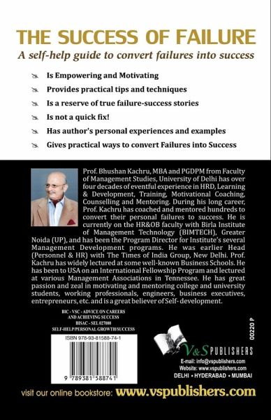 A self-help guide to convert failures into success ¿ Is Empowering and Motivating ¿ Provides practical tips and techniques ¿ Is a reserve of true failure-success stories ¿ Is not a quick fix! ¿ Has author's personal experiences and examples ¿ Gives practical ways to convert Failures into Success