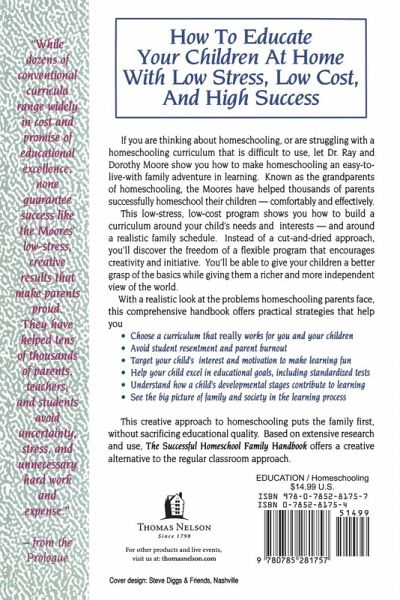 If you are thinking about homeschooling, or are struggling with a educational homeschooling curriculum that is difficult to use, let Dr. Ray and Dorothy Moore show you how to make homeschooling an easy-to-live-with family adventure in learning. This low-stress, low-cost program shows you how to build a curriculum around your child's needs and interests - and around a realistic family schedule. Instead of a cut-and-dried approach, you'll discover the freedom of a flexible program that encourages creativity and initiative.