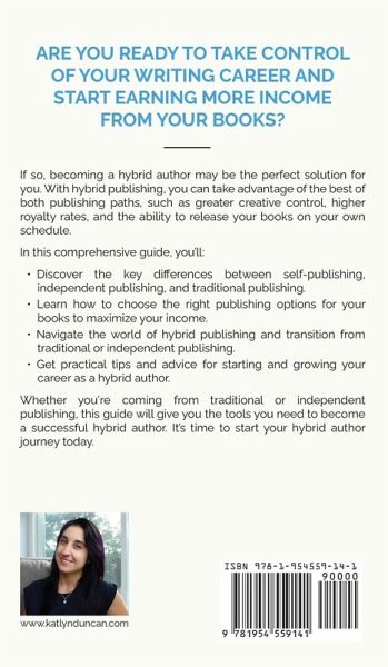 Are you ready to take control of your writing career and start earning more income from your books? If so, becoming a hybrid author may be the perfect solution for you. With hybrid publishing, you can take advantage of the best of both publishing paths, such as greater creative control, higher royalty rates, and the ability to release your books on your own schedule. In this comprehensive guide, you'll: Discover the key differences between self-publishing, independent publishing, and traditional publishing. Learn how to choose the right publishing options for your books to maximize your income. Navigate the world of hybrid publishing and transition from traditional or independent publishing. Get practical tips and advice for starting and growing your career as a hybrid author. Whether you're coming from traditional or independent publishing, this guide will give you the tools you need to become a successful hybrid author. It's time to start your hybrid author journey today.