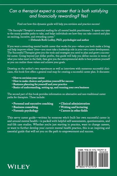 "The Successful Therapist is essential reading for all mental health practitioners. It opens our eyes to the many possible paths to take, and helps individuals see how they can take control and plan an exciting, lucrative, and rewarding career."