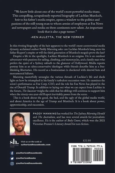 A book about power, apprenticeship, and succession in the first family of media An heir apparent to the first global media dynasty, Lachlan Murdoch has been waiting to run his father Rupert’s empire all his life. In this riveting first biography of a little-understood but hugely influential figure, acclaimed journalist Paddy Manning asks: can the dutiful son hang onto the empire, or will the third generation of Murdoch moguls prove the last? Despite a life in the spotlight, Lachlan’s personality, politics, and business acumen remain enigmatic. Is he the ultra-conservative ideologue media reports maintain, or a free-thinking libertarian, as some friends suggest? After emerging victorious from the Murdoch family’s turbulent succession wars, Lachlan is stepping up at a time of unprecedented instability. What can we expect from his time at the helm, and does he have what it takes to chart a future for this century-old company? This is a book about the good, the bad, and the ugly of the global media world, and about America in the age of Trump and Murdoch. It is a book about power, apprenticeship, and succession.