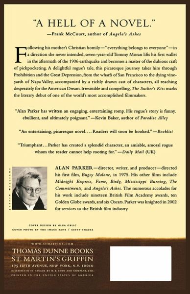 From the highly acclaimed director of Midnight Express and The Commitments comes a sparkling story of a pickpocket's odyssey through America. During the San Francisco earthquake of 1906, seven-year-old Thomas Moran finds himself accidentally embarking on a career in pick-pocketing. In the following years he becomes a master of his dubious craft and grows to manhood traveling from state to state across America. His picaresque journey takes him through Prohibition and the Depression; into the desperate highs of the Hootchy-Kootchy and the dying vineyards of California, accompanied by an array of richly drawn characters frantically clutching at the crumbling American Dream. Italian and Chinese gangsters, con-artists, corrupt clergy, and speak-easy bootleggers all have a part to play in Tommy's destiny, but it is Effie, the great love of his life, who offers him the chance to change his future, and tries to save him from himself. Colorfully written, engaging and richly evocative of an extraordinary period in American history, The Sucker's Kiss marks the literary debut of a master storyteller.