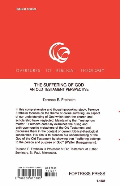 In this comprehensive and thought-provoking study, Terence Fretheim focuses on the theme of divine suffering, an aspect of our understanding of God which both the church and scholarship have neglected. Maintaining that "metaphors matter," Fretheim carefully examines the ruling and anthropomorphic metaphors of the Old Testament and discusses them in the context of current biblical-theological scholarship. His aim is to broaden our understanding of the God of the Old Testament by showing that "suffering belongs to the person and purpose of God".