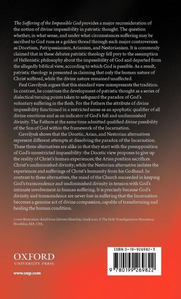 This book provides a major reconsideration of the issue of divine suffering and divine emotions in the early Church Fathers. Patristic writers are commonly criticized for falling prey to Hellenistic philosophy and uncritically accepting the claim that God cannot suffer or feel emotions. Gavrilyuk shows that this view represents a misreading of evidence. In contrast, he construes the development of patristic thought as a series of dialectical turning points taken to safeguard the paradox of God's voluntary and salvific suffering in the Incarnation.