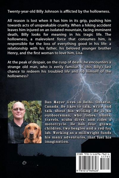 As Seen in Scream Magazine "Mayer's dark theme touches on the state of human brokenness and how it can fracture our relationships, our loves and ourselves." -Authors Reading Twenty-year-old Billy Johnson is afflicted by the hollowness. All reason is lost when it has him in its grip, pushing him towards acts of unspeakable cruelty.. When a hiking accident leaves him injured on an isolated mountain, facing imminent death, Billy looks for meaning in his tragic life. The hollowness, a malevolent force that consumes him, is responsible for everything good in his life: a relationship with his father, his beloved younger brother Henry, and the first woman to love him, Lisa. At the peak of despair, on the cusp of death, he encounters a strange old man, who is eerily familiar. Is this Billy's last chance to redeem his troubled life and rid himself of the hollowness?