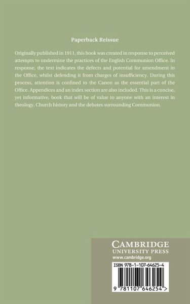 Originally published in 1911, this book was created in response to perceived attempts to undermine the practices of the English Communion Office. In response, the text indicates the defects and potential for amendment in the Office, whilst defending it from charges of insufficiency. During this process, attention is confined to the Canon as the essential part of the Office. Appendices and an index section are also included. This is a concise, yet informative, book that will be of value to anyone with an interest in theology, Church history and the debates surrounding Communion.