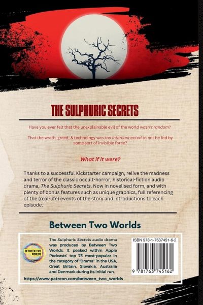 "Have you ever felt that the unexplainable evil of the world wasn't random? That the wrath, greed, & technology was too interconnected to not be fed by some sort of invisible force? What if it were?" As an occult-horror historical-fiction, The Sulphuric Secrets is a radical experiment in genre and storytelling. What begins as an unspeakable occult experiment somehow morphs into a vast global conspiracy spanning 300 years, and embroiling Hollywood, the Haitian slave revolt, deep-sea exploration, serial killers, and imprisoned gods in internet architecture. Despite its truly off-the-wall characters and events, The Sulphuric Secrets became famous for the depth of background research to compile the episodes - as most of it is true. Much like the protagonists, take the bewildering journey as you try and discern just what exactly is wild fantasy, and what is true, but remains - A Sulphuric Secret. Between Two Worlds is the pseudonymous creator of The Sulphuric Secrets audio drama (and now, novel). Across 117 ratings, it has averaged 4.5 / 5 stars, and since the original 13-episode run has reached the following peak rankings in the categories of "Drama" and "Fiction" respectively on Apple Podcasts:Denmark (9th and 19th) Australia (51st and 83rd) Great Britain (74th and 175th) Malaysia (3rd and 11th) Slovakia (3rd and 7th) USA (75th and 219th) Croatia (99th - out of all categories combined).