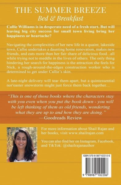Callie Williams is in desperate need of a fresh start. A surprise visit from her sister will set her on an unexpected course. But will leaving big city success for small town living bring her happiness or heartache? Navigating the complexities of small town life, Callie undertakes a daunting home renovation, makes new friends, and eats more than her fair share of delicious food...all while trying not to meddle in the lives of others. The only thing hindering her search for happiness is the attraction she feels for Nick, a rough-around-the-edges construction worker who is determined to get under Callie's skin. A late-night delivery will tear them apart, but a quintessential nor'easter snowstorm might just force them back together....
