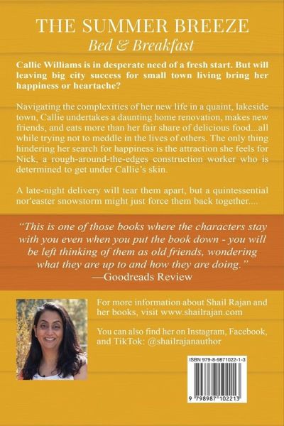 Callie Williams is in desperate need of a fresh start. A surprise visit from her sister will set her on an unexpected course. But will leaving big city success for small town living bring her happiness or heartache? Navigating the complexities of small town life, Callie undertakes a daunting home renovation, makes new friends, and eats more than her fair share of delicious food...all while trying not to meddle in the lives of others. The only thing hindering her search for happiness is the attraction she feels for Nick, a rough-around-the-edges construction worker who is determined to get under Callie's skin. A late-night delivery will tear them apart, but a quintessential nor'easter snowstorm might just force them back together....