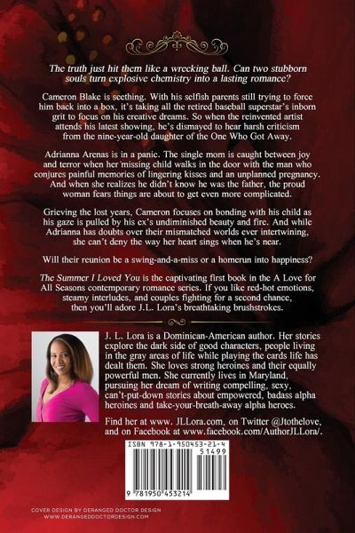 The truth just hit them like a wrecking ball. Can two stubborn souls turn explosive chemistry into a lasting romance? Cameron Blake is seething. With his selfish parents still trying to force him back into a box, it's taking all the retired baseball superstar's inborn grit to focus on his creative dreams. So when the reinvented artist attends his latest showing, he's dismayed to hear harsh criticism from the nine-year-old daughter of the One Who Got Away. Adrianna Arenas is in a panic. The single mom is caught between joy and terror when her missing child walks in the door with the man who conjures painful memories of lingering kisses and an unplanned pregnancy. And when she realizes he didn't know he was the father, the proud woman fears things are about to get even more complicated. Grieving the lost years, Cameron focuses on bonding with his child as his gaze is pulled by his ex's undiminished beauty and fire. And while Adrianna has doubts over their mismatched worlds ever intertwining, she can't deny the way her heart sings when he's near. Will their reunion be a swing-and-a-miss or a homerun into happiness? The Summer I Loved You is the captivating first book in the A Love for All Seasons contemporary romance series. If you like red-hot emotions, steamy interludes, and couples fighting for a second chance, then you'll adore J.L. Lora's breathtaking brushstrokes. Buy The Summer I Loved You to bask in passion's rays today!