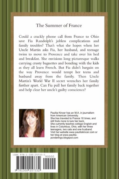 When Fia Jennings loses her job at the local newspaper, she thinks she'll have the chance to bond with her teenage twins. As she realizes she may be too late to create the perfect family, she's saved by a phone call from her great Uncle Martin who runs a bed and breakfast in Provence. Uncle Martin wants Fia to venture to France to run the B&B so he and his wife Lucie can travel. He doesn't tell Fia about the secret he hid in the house when he married Lucie after fighting in World War II, and he doesn't mention the people who are tapping his phone and following him, hoping to find the secret.