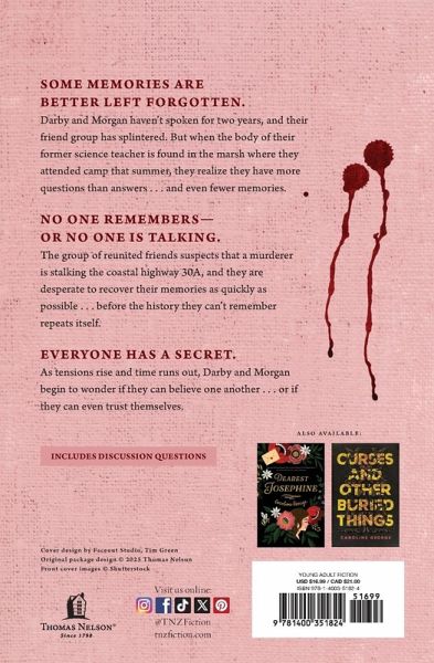 Caroline George once again transports readers with lush, evocative prose, leading them to ask the question: what happens when we can't even trust ourselves? Some memories are better left forgotten. Darby and Morgan haven't spoken for two years, and their friend group has splintered. But when the body of their former science teacher is found in the marsh where they attended camp that summer, they realize they have more questions than answers . . . and even fewer memories. No one remembers--or no one is talking. The group of reunited friends suspects that a murderer is stalking the coastal highway 30A, and they are desperate to recover their memories as quickly as possible . . . before their history they can't remember repeats itself. Everyone has a secret. As tensions rise and time runs out, Darby and Morgan begin to wonder if they can believe one another . . . or if they can even trust themselves. * Young Adult suspense with romance * Stand-alone novel * Book length: 95,000 words * Includes discussion questions for book clubs