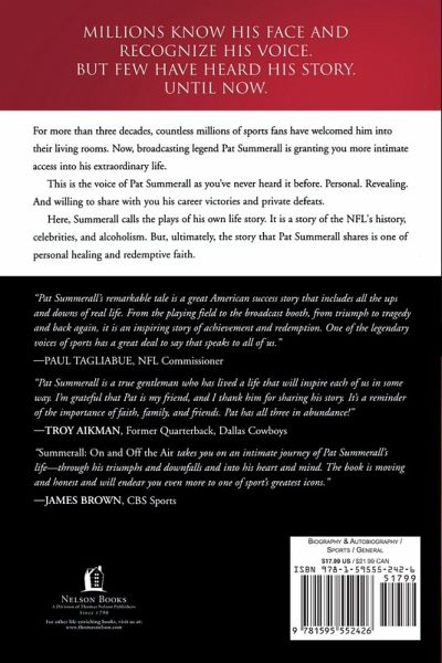 For more than three decades, countless millions of sports fans have welcomed him into their living rooms. Now, broadcasting legend Pat Summerall is granting you more intimate access into his extraordinary life. This is the voice of Pat Summerall as you've never heard it before. Personal. Revealing. And willing to share with you equally his career victories and private defeats. Here, Summerall calls the plays of his own life story. It is a story of sports, celebrity, and alcoholism. But, ultimately, the story that Pat Summerall shares from his life is one of spiritual healing and redemptive faith.